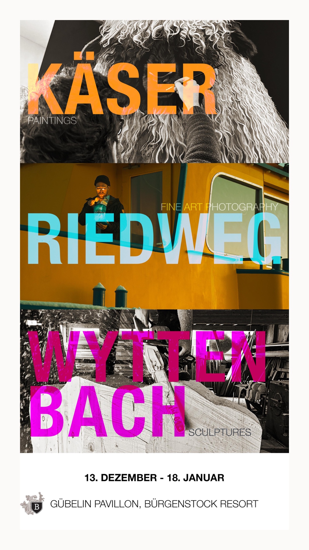 Wir laden dich herzlich zu unserer gemeinsamen Ausstellung im Bürgenstock Resort ein. An diesem Abend zeigen wir drei unsere Arbeiten, die in ihrer Art sehr unterschiedlich sind und sich doch wunderbar ergänzen.